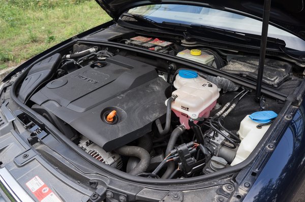 Kicsit lassan, körülbelül három fordulat után kel életre a hosszában beépített 2.0 TDI, a következő tulajdonosnak talán érdemes lesz ránéznie az izzítógyertyákra vagy az önindítóra, egyébként nagyon csendes, az alapjárati rezonancia még hideg motornál is szinte nulla. A típusjelzés senkit ne tévesszen meg (az Audinál hagyomány volt elhagyni a PD jelzést), ez a motor is Pumpe-Düse, vagyis adagolófúvókás turbódízel, amit megannyi Volkswagen-csoportos modellben használtak. Az évek során rengeteg változáson ment át, nem könnyű kiigazodni a variánsok között, de mindenképpen érdemes időt szánni rá, mert komoly különbségekre lelhetünk.
