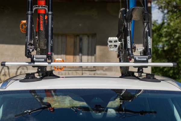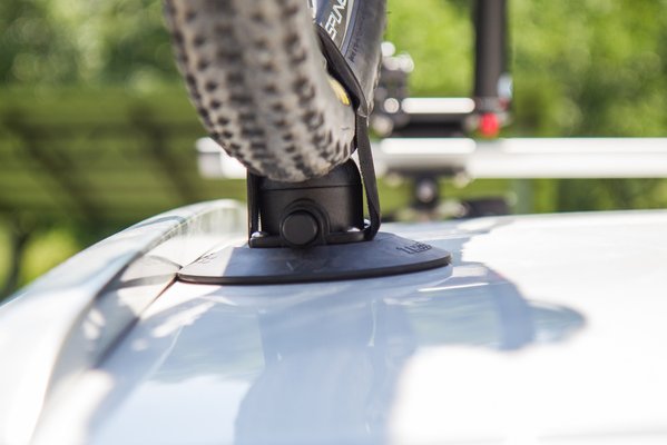 Az univerzális használhatóság a tapadókorong érdeme, ezek úgy tenyérnyi sima felületen fekszenek fel, és utána egy vákuum-ejektorral (tulajdonképpen egy pici, fordított pumpa) kiszívjuk alóluk a levegőt, és tartanak. Egy korong durván 110 kilót képes megtartani, vagyis a négy koron két bringával röhögve elbír, gyanús, hogy egy mélygarázsba való óvatlan behajtásnál inkább a tetőlemezt tépné le a kocsiról, mintsem elengedjen. És ha már tetőlemez: ha vékony a tető, mint az Opelen, akkor a bukkanókon be-behorpasztja a tetőt, aminek igazából csak a hüppögése zavaró, kárt nem tesz benne.