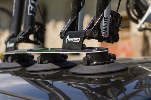 A tetőre rakott bringa a teszt szerint durván megdobja a fogyasztást, a TreeFrog azzal kompenzál, hogy az első kereket ki kell venni a bringából, hiszen a tengelynél rögzül. Ennek komoly előnye, hogy fém kapcsolódik a fémhez, az eleve komoly terhelésre méretezett villaláb tarja a bringát, nincsenek vázra fogó csipeszek, amiket állítgatni kell. Ennek alapvetően két hátránya van: mivel ma már több tengely szabvány létezik a kerékpáriparban (20 mm-es, 15-mm-es, Boost, Lefty, hagyományos, stb.), egy konzollal, csak az adott szabvánnyal rendelkező bringát lehet szállítani. Ezzel csak akkor lehet baj, ha minden alkalommal más bringát vinnénk, így ugyanis több konzolt kell megvenni és minden alkalommal átszerelni az aktuális első tengelyhez, vagyis akkor gyors és kényelmes, ha mindig ugyanazt a bringát visszük vele. A hátsó kereket egy önálló korong rögzíti, ez tépőzárral fogja a kereket.