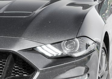 Dizájnban afféle facelift-változások vannak, csak a műanyag feliratú pólóban veretik a csajok. Egy változás tűnt fel: a fényszóró alatti helyzetjelző és ködlámpa megméretett és bárgyúnak találtatott, ezért egyfajta méregfog motívum tűnt fel a szája sarkában. Az ipari formatervezés nem zoológia, hiszen a vadló növényevő, páratlan ujjú patás, a kígyónak meg se ujja, se patája. Van, mikor adnak ilyesmire a formatervezők, a Dodge Vipernek például kifejezetten csörgőkígyós, háromszögletű feje lett, a Mustangon viszont az állatvilág apró finomságaira kevésbé fogékony dizájnerek dolgoztak. Nem baj, mert a forma amúgy jó, a negyedik évében sem fáradt el, illetve amennyiben ez lehetséges, akkor egyenesen sőt.