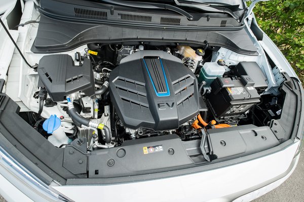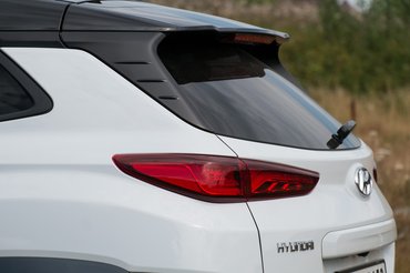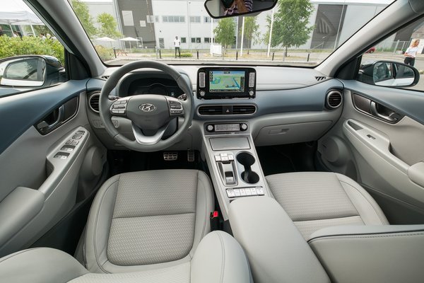 Hogy miről lehet felismerni, melyik az Electric és melyik a még régi, gőzgép-hajtású Kona? A villamosnak befedték a hűtőrácsát, kerekein mint valami helikopter anti-rotorok, különleges, a légellenállást csökkentő küllők vannak, hátul pedig fura, többlemezes hullámvonal húzódik keresztben a lökhárítója alján. Odabent középen nincs váltó, a helyén egy nagy, parancsnoki híd terpeszkedik, rajta az irány megszabására való vezérlőgombbal, alatta pedig indukciós telefontöltőt és USB-csatlakozásokat adó pakolóüreggel.
