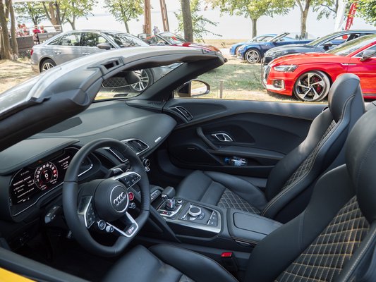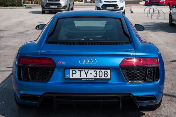 Az első etapon kicsit lemaradtam az autóválasztásnál. A dörzsöltebb kollégák hamarabb lecsaptak a két R8-ra, minthogy egyáltalán felcsillanhatott volna a szemem. Végül abban bízva, hogy majd a székesfehérvári cserénél én jövök, beültem anyósnak a tetős R8-ba. Zsúfolt sztrádán, egy külön gombbal tovább fokozott, amúgy is ordenáré V10-es hangját hallgatni egy ideig bizsergető, de hosszú távon nem annyira pihentető, és mivel más vezet, nem tudni mikor jön az újabb hegyomlás szerű gyorsítás százról a következő autóig.
