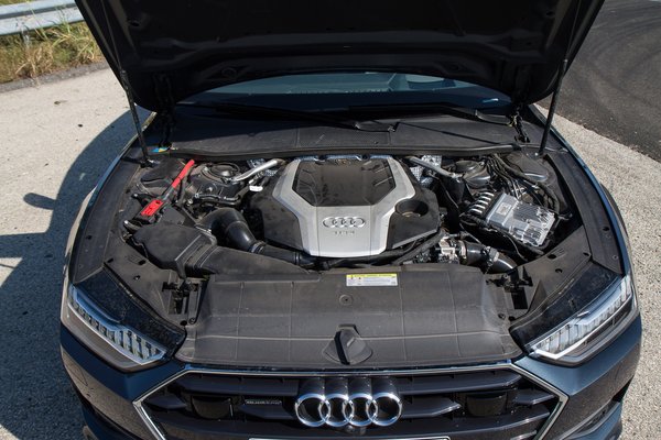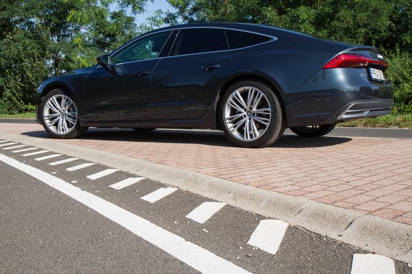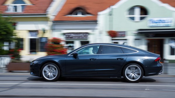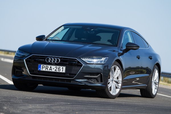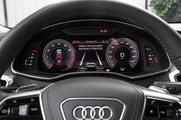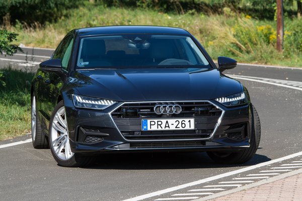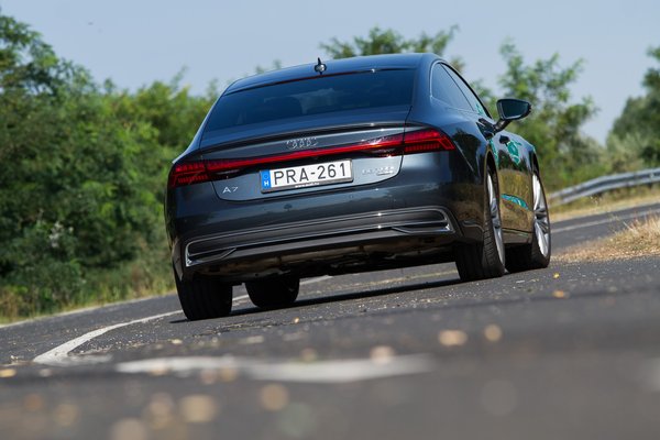 Nagyon meglepődtem, hogy nem dízel, hanem benzines tesztautót kaptunk, mert hiába a dízelek mélyrepülése, ebben a kategóriában meg lennék lepve, ha sokat adnának el az 55 TFSI jelű, 340 lóerős és 500 newtonméteres, háromliteres turbómotorból. Pedig átkozottul finom gép, és az A7 hangszigetelése olyan, hogy szinte semmilyen hang nem jön be, pedig hidegen egy közvetlen befecskendezéses benzinmotor is kerreg picit.