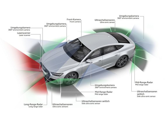 Az A7 ezzel szemben egyszer figyelmeztetett, és akkor tényleg hirtelen kellett fékezni egy nagyobbat, a sávtartó jól látta a sávokat, egész emberi távolságból követi az előttünk menőt, vagyis nem túl távolról. A táblafelismerő is elég jól dolgozik. A magyar táblakihelyezők meg tudják tréfálni egy-egy szervizút korlátozásával, bár az Audi szemmel láthatóan a térképadatbázissal is kalkulál. Azonban, ahogy szinte az összes gyári navigáció, az M0 keleti szakaszát (az M5-M3 között) ez is 130-as útként ismeri, pedig marhára nem az.