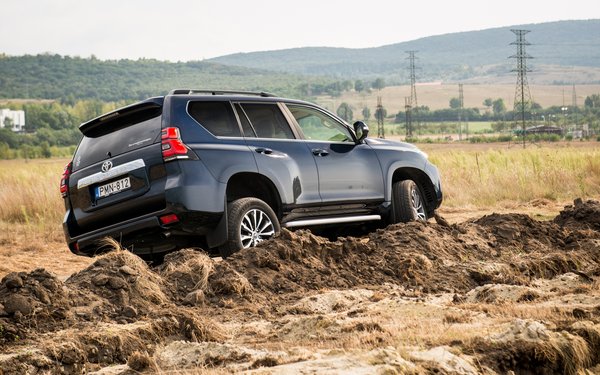A sok optikai horror mellett el is sikkad, hogy a Land Cruiser műszakilag ütős holmi. A 11,8 méteres fordulókör például meglepően jó. A motorja, ami egy 2,8-as négyhengeres, 175 lóval és 450 Nm-rel egyszerűen tökéletes. Nem egy feleslegesen erős német terrorbombázó, viszont országúton könnyen 10 liter alatt tartható, 100-as tempó alatt elég jól ugrik, 100 felett meg ne tessék ugrálni egy 2,4 tonnás toronnyal. Hogy felesleges erősebbnek lenni, még közúton is, azt épp a 283 lovas VW Touaregben tanultam meg a minap: az az erő egyszerűen soha nem fog kelleni. A Touareg ráadásul SUV, közútra optimalizálva, de azzal sem esik jól a fickándozás.