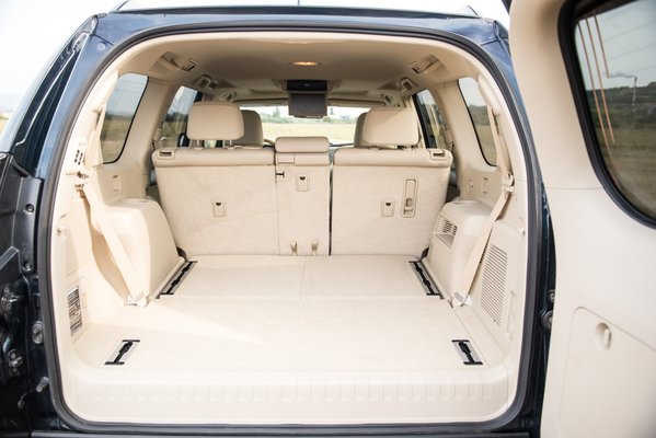 Amúgy az ergonómiával semmi baj, az ülések jók, a hátsó ülések a szokásos, amennyiben terepjárókban a magas padló miatt afféle sámlis üléspozíció érhető csak el. A harmadik üléssor is a szokásos, amennyiben oda már meg se próbálok ülni. Tény viszont, hogy elegáns, ahogy motor nyitja, és ahogy egy kallantyúval előre lehet küldeni egy sínen a középső sort, ha kiszállnánk.