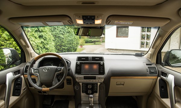 A komplett előző bekezdés arra az időszakra vonatkozik, amikor még csak képeken nézegettem az új Land Cruiser belsejét. Úgy csak vicces, élőben viszont gyomorszorító a döbbenet. Neutronbombát dobtak egy banánköztársaságra 2001 táján, most merészkedett vissza a Toyota-szalon tulajdonosa, és hívott egy autós bloggert? A kormányon a fabetét olyan, hogy nem is tudom, képzeletben mit játsszak be mögé a filmbe, műröhögést vagy siratóasszonyokat. Ilyen műfa?! Már a képeken is súlyosnak tűnt, de az éles találkozás varázsát semmi nem adhatja vissza. Nem karcolja meg a gyűrű, mint a Porschéét, de nem akarom túlgondolni, mert emögött szerintem nincsenek nagy tervek.