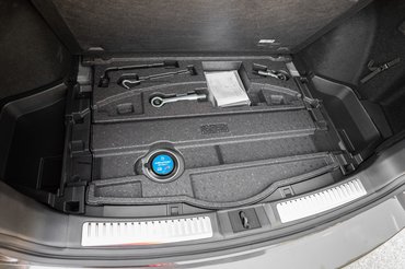 Kár, hogy a ma szokásos kombifunkciók jó nagy hányadát kihagyták az autóból: a fedél kézzel nyílik és csukódik (pedig ezen a szinten, ekkora ajtónál már jólesik a motoros segítség), nincs rendes csomagrögzítő fül, s kihajtható lapot, vagy tologatható keresztsínt sem találtam, ami a kisebb csomagokat megakadályozná abban, hogy a raktér belsejébe vándoroljanak, ahová utána expedíciót kell szervezni, ha ki kell halászni őket onnan. Jópofa az automatikusan felemelkedő csomagtérroló, de az azt tartó karabinerek gyengusz műanyag fülecskék, s amikor el akartam távolítani az egész miskulanciát, a rúdjával azért küszködtem egy darabot, mire ki tudtam akasztani a helyéről.