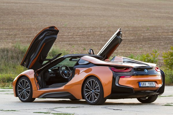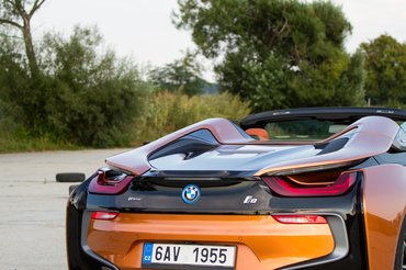Kevés kivételtől eltekintve a zárt autóból utólag faragott kabriók jellemzően nehezebbek, hiszen tele kell pakolni merevítőkel, hogy ne csavarodjon a bodé a tető hiánya miatt. Az i8 kupé súlya 1450 kiló, ami a megjelenésekor, főleg ekkora akkuval kifejezetten kevésnek számított, a roadster jó 200 kilót hízott, kisebb részt a nagyobb kapacitású akku, nagyobb részt pedig a tetőmozgató mechanika miatt. 1670 kiló persze még mindig nem sok, inkább csak azt sulykolja, hogy ez nem sportkocsi. Ugyanitt áldassék annak a menedzsernek a neve, aki kibulizta, hogy maradjanak az átlósan felfelé nyíló ajtók, sok utólag kabrióvá tett autón ezt is elkaszálják. Szintén a kabriósítás áldozata lett a két hátsó ülés, de ez inkább nyereség azoknak, akiket valaha is oda kényszerítettek a kupéban.