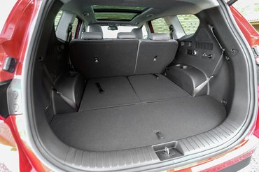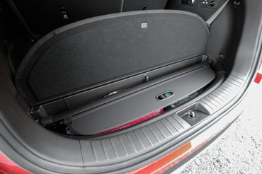 Mert amúgy minden van itt. Például a korábbi Santa Féhez képest 40-nel több liternyi pakolási lehetőség lett a csomagtartóban (a hétszemélyes kivitelben, öt üléssel így már 547, a sima ötülésesben 625 liter). Ugyanitt, a raktérben 12 voltos stekker, a padlóba nyom nélkül elsüllyeszthető roló, elektromosan lebillenthető leghátsó két ülés, utóbbiak mellett fűtő-hűtő szellőzőrostély állítható befúvással is akad. Egy pozícióval előbbre, a második sor utasainak két 12 voltos és egy 230 voltos aljzat jár, illetve az ajtóból kihúzható, napvédő roló is, no meg a főnökös ázsiai extra: a jobb első ülést a jobb hátsó pozícióból is el lehet tolni, le lehet billenteni, mert a támla élén erre adnak két billenőkapcsolót. Ez már milyen!
