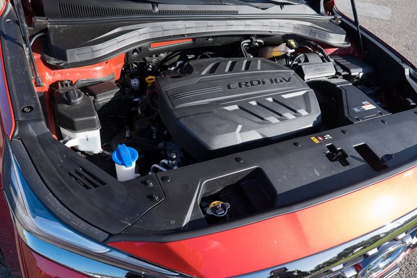 Mint már pedzegettem a cikk elején is, a Santa Fé nem versenyautó, de ez így van rendjén, mert aki száguldozni akar, az vegyen autónyi dimenziójú autót és fizessen be egy pályanapra, mert nem kell a világnak ennél több SUV-val elkövetett, agresszív gyilkosság. A Santa Fé épp elég biztonságos kanyarban, hogy el lehessen vele érni bárhova, nem is okvetlenül lassan, a 2,2 literes, 200 lóerős, négyhengeres dízelmotorja épp elég erős ahhoz, hogy kényelmesen be lehessen vele fejezni az ésszel megtervezett előzéseket, még ha közben történetesen lakókocsit is húz a gép. Hogy oldalszélre érzékeny, hogy beforduláskor billeg, hogy a kormány szintetikus és túl erősen akar középállásba visszatérni, különben meg valahogy mű-nehéz? Na és, semmit se csinál olyan rosszul, hogy kellemetlen lenne (kivétel talán az oldalszél-érzékenység), cserébe viszont rugózik.