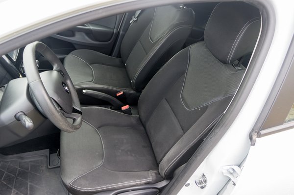 Szerencsére a szellőztetés továbbra is manuális tekerőkapcsolókon nyugszik, a beállításához nem kell félrenéznünk az útról. A kesztyűtartó feletti fedél nélküli rekesz már a Zoéban is tetszett, pont a mai vékony tepsitelefonok tárolására való. Szintén okos rendelhető extra a tálca formájú gumiszőnyeg – aki sokat jár saras környezetben, az összeteszi a két kezét az ilyen figyelmességért. Az új autókban sokszor átkozott zongoralakk meglepő módon még ebben a 191 ezret futott autóban sem idegesítően karcos, az ujjlenyomatok és a porszemek viszont továbbra is előszeretettel díszítik. A használat jelei inkább a klasszikus helyeken látszanak: kicsit megkopott a kormány, és van néhány karcolásnyom a tetőoszlopok műanyag borításán is.