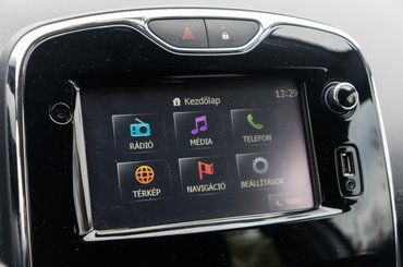 Amit kívül könnyű elrejteni, bent azért látszik. Az aktuális Clio beltere végtelenül egyszerű, mégsem unalmas. Aki nem szereti az érintőkijelzőket, annak rossz hír, hogy már a legolcsóbb változatba is jár egy vékony tapicskolható felület, de inkább az a 7 colos, Media Nav jellemző, amit a tesztautóban is láttunk - ez LG termék, NNG-fejlesztésű navival. Nem idegesítően lassú, elfogadhatóan működik a navigáció. A drágább verziókban vicces az R-Link rendszer hangmodulátora, amellyel komolyabb autók előre rögzített motorhangját szólaltathatjuk meg gázadáskor.