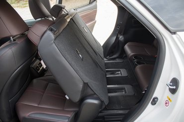 A sötét beltér igazi lexusos prémiumvonás, és még a lézervágott faberakásokkal is sikerült a giccsen kívül maradni. Félig-meddig a kormány is fényesre lakkozott fa, de annyira finom mögötte a villanyszervó, hogy izzadt tenyérrel se lesz tőle közveszélyes. A műszeregységnek jót tett, hogy ők sem mennek a VW-konszern után, még ebben a plafonig extrázott Luxury-ben is maradt két analóg kijelző a kormány mögött. Ja, meg brutál jól puha minden, ami a testtel érintkezik az üléstől az ajtókárpiton át a könyök- és csuklótartóig. Akárhogy túrom, csak a Panamera jut eszembe, ahol ezt így tudják. Megvan minden, ami egy nagy prémium autóban jó. Egyel hátrébb ugyanez, aztán eszünkbe jut, hogy ott van az a harmadik üléssor, és minden borul.