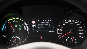 Kulturáltan, teljes értékű villanyautóként suhan a KIA. Az elején megszokást igényelt, hogy még tisztán elektromosan is érezni a váltásokat, de ha a váltó elé építik az elektromos hajtást, az már csak ilyen. Az elindulásnál ülésbe préselő gyorsulás is megvan, de másodikban már érezhetően gyengül az autó, harmadikban és negyedikben pedig alig marad erő. Persze, ha gond van, és sürgőssé válik a haladás, padlóig taposva a pedált beszáll a kétliteres benzines, és egyesült erővel, de még mindig nem kifejezetten fickósan gyorsít a 205 ló.