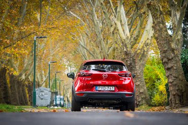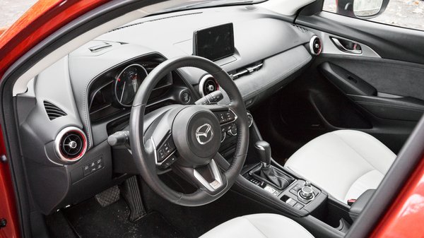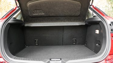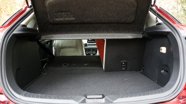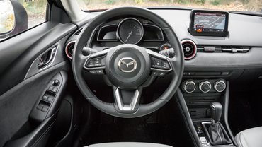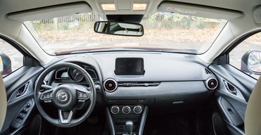A csomagtartója csak 14 literrel kisebb (350 liter), mint a 3-asé, de ez csak valami számolós trükk lehet. Nyilván bele van számolva az a két centis mélységű rekesz, amivel sík padlójú csomagteret imitál. A tengelytáv a Mazda2-esé, az autó hosszabb vagy 10 centivel, ezért nagyobb a csomagtartója. De csak magasabb, és nem jobb - a 3-as csomagtartójába sokkal jobb pakolni. Itt látszik, hogy nem a semmire kapta a CX-3 a Red Dot díjat Németországban: ugyanolyan ügyesen imitál nagyobb állatot, mint amikor a kutyák felborzolják a szőrüket.