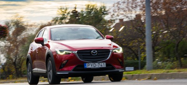A tablet az persze ott van, azt sem tudom, milyen megokolásból veszi körül körömmel kipattintható lemez. Ki is pattintottam, de pont nem volt nálam 10-es kulcs, hogy kiszereljem a kijelzőt. Nagyon jó kis autóbelső, főleg mert ahol már olyanok az illesztési hézagok, hogy ha a Nasca-fennsíkon látnánk nagyban, azt hinnénk, a paleo-indiánok ökörhugyozást akartak ábrázolni, szóval a csálé gombok nagyon kiesnek a látómezőnkből. Az európai bemutató nem lehetett a világ legnagyobb bulija, hiszen faceliftekkor nem lehet a lemezekhez nyúlni, amihez meg lehet, mint a lámpák, vagy a hűtőrács, azokhoz nem érdemes. Úgyhogy a CX-3-mal a legjobbat tették, amit egy modellfrissítéskor lehet: gyakorlatilag úgy hagyták.