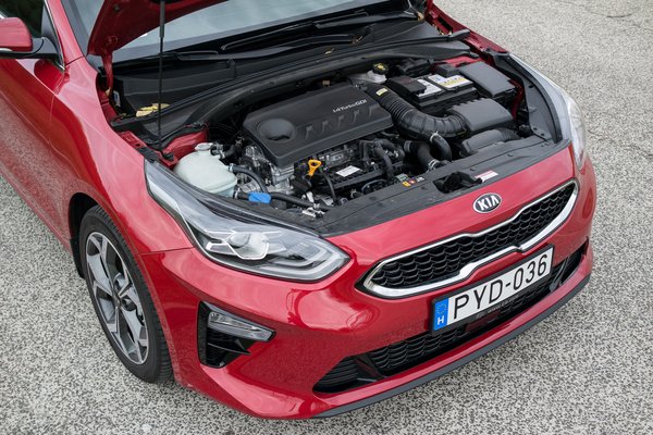 Ettől függetlenül a Ceed kicsit olyan, mint volt. Ránézésre sem a hossza, sem a karaktere nem változott érdemben, ami általában az elégedettség jele szokott lenni az autógyáraknál. Közvetlen testvéréhez, a Hyundai i30-hoz képest kicsit európaibb, több a részlet az orrán, viszont oldalról egyik típus sem karakteres. Elsőre azt hittem, itt már tényleg csak az autók orrát-farát cserélgetik, de alaposabban megnézve nem ez a helyzet. Még a tank ajtócskájának a formája sem ugyanaz, ahogy talán az ajtóké sem. Nem mintha ez jelentene bármit a júzernek. Mindenesetre jó hír, hogy nem csak emblémacseréről van szó, pedig ha felnyitod a motorteret, tényleg tök ugyanazt látod.