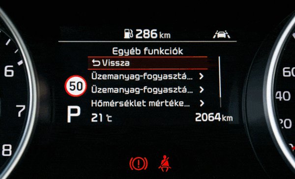 Mindehhez a Hyundai-Kia bevált, nem túl bonyolult, és egyszerűen, érintőképernyővel kezelhető multimédia rendszerét kapjuk. Lényegében ugyanaz, mint bármelyik másik konszernmodellben, de nem baj. Talán a képernyő lehetne fényesebb és kontrasztosabb, de lássuk be, most nem egy prémium autóról beszélünk, pont jó ez itt. A műszeregységben lévő menü kezelése is öt perc alatt megtanulható, de a Kiánál nincs virtuális műszeregység és hasonlók, csak egy kijelző a két hagyományos műszer között – ennyi.