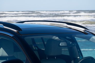 És mégis szeretem. Már azért is, ahogy kinéz: sziluettre még csak-csak rá lehet mondani, hogy de hiszen ezt már láttuk, de az orr az legfeljebb a Citroënekre hasonlít. Nyilván sokat segít neki, hogy viszonylag kevés fut belőlük, de a trükkös hűtőrács és a szűkre húzott fényszórók pont annyira teszik mássá, hogy még nem öncélú. Ha már mindenképp SUV-val kell járni, az inkább ilyen legyen, mint valami böszmeség. A lekerekített ablakok és a színes betétekkel kiegészített első és oldalsó betétek is üdítőek a szokásos metodikához képest, amikor fényezetlen deszkákkal akarnak terepesnek láttatni egy autót.