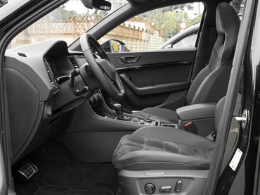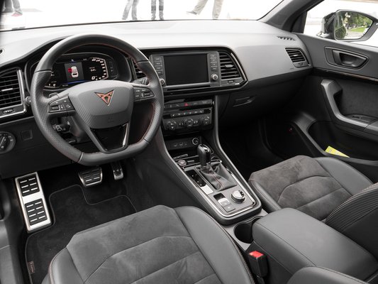 Ezen kívül alátettek egy egészen kiváló futóművet, ami az összkerékhajtással együtt bőven tartja a szintet a bivaly motorral. Amikor a lezárt hegyi szakaszon kicsit elsokallt egy kanyarban az épp kellemeset ralizó kolléga, tökéletes egyensúlyban csúszott le az ívről, majd a rövid kis ijedelem után már gyűrte is tovább az aszfaltot. A motor és a futómű tehát jó, már csak egy rendes fék kell, és kész az ideális csapatós SUV: a bizalomgerjesztő Brembo nyergek úgy fogják a lyuggatott tárcsákat, hogy öröm felkenődni a biztonsági övre. A Cuprások szerint pályán is hosszasan nyüstölhető a fék, ezt nem volt alkalom kipróbálni, de legyen igazuk.