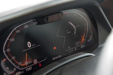 Nem nehéz kitalálni, hogy a kínai felvevőpiac felé orientálódtak a tervezők, erre utalnak a potméterek és nyomógombok, amiknek a peremébe szintén sík lapokat csiszoltak, ezeken szivárványosan törik meg a fény. Leírva nem hangzik jól, élőben is megszokást igényel, de ez már az újhullámos BMW-beltér, ami az art décoból merít, és összességében működik, de még hogy. Az elrendezés pont olyan, mint eddig, csak éppen újra feltalálták az egész bútorzatot, és amíg az ember nem kezdi el számolgatni a kristályok sík lemezeit, addig ízléses is. Megújult a műszerfal, illetve a grafika, mostanra a fordulatszámmérő ellentétes irányban jár, mint a sebességmérő, ugyanez igaz a középső kijelzőre is, a menüstruktúra maradt, csak átdizájnolták kezelőfelületet, most jobban emlékeztet egy okostelefonra.