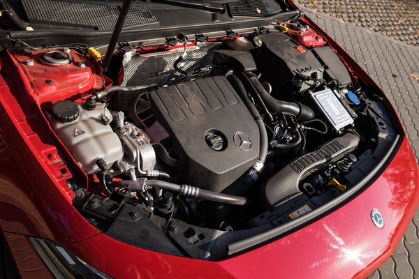Ilyen kétarcú affér a motor is, amely normál használatban, közepes fordulatokig, közepes gázadásnál egy meggyőző, készséges, ügyes gép, finom géphanggal. Ám ha az ember ki akarja aknázni a 163 lóerőben és 250 newtonméterben rejlő, nem szerény dinamikai lehetőségeket, és elő akarja csalogatni a nyolckettes gyorsulást vagy minél előbb meg akarja ütni a kettőhuszonötös végsebességet, a hangja kellemetlenül fémes éllel gazdagodik, nagyon nem egy 13 milliós Mercedesbe illő módon. Igen, ez az autó ennyibe kerül, még ha 7,8 millióról indul is. Csak aztán belekerül az automata, az alaphoz képest 54-gyel több lóerő, a két 10,25 colos LCD, a kulcsnélküli minden, a tolatókamerás parkolás, a parkasszisztens, a navigáció, az ülésfűtés, az üvegtető – no meg olyan csoda extrákhoz is hozzájutunk, mint a felirat nélküli megjelenés és a befizetett adók –, és máris bő nyolc számjegy szerepel a cechen.