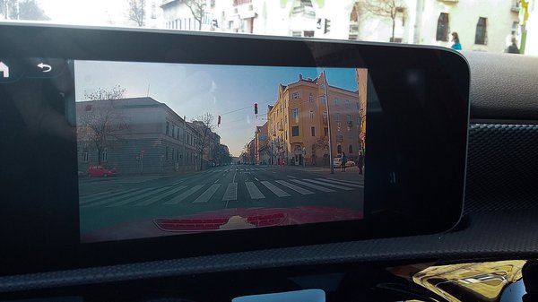 Az A osztály azonban mindent megtesz azért, hogy elaltassa bennünk a gyanakvót. Olyan dolgokat művel, amit más autók nem, és ezek jók. Például a navigációja a kamerája által közvetített valós utcaképre vetíti rá a javasolt haladási irányt, ami a gyakorlatban egészen csodásan működik. Aztán odaér az ember egy közlekedési lámpához, elsőként, és a központi kijelzőn megjelenik a kereszteződés képe – máris nem kell a szélvédő széle alá görnyedni, hogy lássuk, mikor indulhatunk el. Erre a funkcióra erősen rákaptam a tesztelés végére, most már az állólámpás Mercimből is hiányolom.