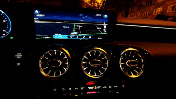 Persze, elvileg mindent lehet vezérelni beszéddel is, bár elismerem, sosem voltam az autókkal való verbális kommunikáció mestere. Az ősi, utcai szerelős hagyományaim szerint ezek a társalgások mindig erősen egyoldalúak és hangosak voltak, majd repülő villáskulcsokhoz vezettek. A Mercedes A osztályban viszont a világ legfejlettebb, magától tanuló beszédfelismerő rendszere van, amellyel elméletileg mondatokban is lehet társalogni. Nekem csak a meleget sikerült feltekernem (tehát nem is olyan nagy baj, hogy nem láttam?), a többi lehetőséggel még kicsit küszködtem, aztán inkább átengedtem ennek kiaknázását a leendő tulajdonosoknak.
