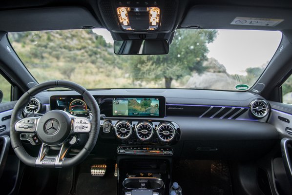 Hát na: biztos lesz, aki péniszhosszabbítónak veszi, hogy nézd csak, pajtikám, nálunk még az asszony kocsija is ilyen kurva erős, legalább autózhat is vele, ha akar. Jókat autóztam vele az órákig tartó mallorcai szerpentineken, élveztem is a 300+ lovat, de azért csak az volt a végkövetkeztetésem, hogy felesleges ennyi erő: ide egy kétliteres szívó benzines kéne 200 lóval, és olyan 7-7500-as csúcsfordulattal. Igaz, azt már a Subaru megcsinálta a BRZ-vel, és nyilván nincs már olyan Euro-norma, amin át lehetne vele csúszni. Hiszen a turbómotor keveset fogyaszt, az A35 AMG-vel is simán eljártunk 18 literes átlaggal, kis autópályával, sok heggyel. :DD
