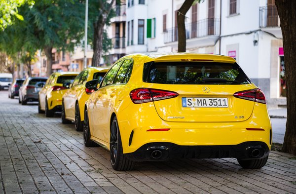 Az A35 AMG-t nyilván könnyebb szeretni a sima mallorcai szerpentineken, de magyar útviszonyok között azért kell majd hozzá egy megfelelő életkor és vallás, hogy együtt tudjon élni vele a tulajdonos. És később jön még egy még feleslegesebben erős A45 AMG. Az én választási tanácsadóm: A osztály valami kevésbé túlfújt benzines turbóval, 200 ló körül, a legnagyobbnál (19) két mérettel kisebb, de dögös kerekekkel, élénk színben, mint ez az új sárga, és kész. Ránézni is jó, lehet vele gyorsan menni, de nem jajgatnak az utasok az összes úthibán. Mert az AMG-futóműhöz kell egy másik ország.