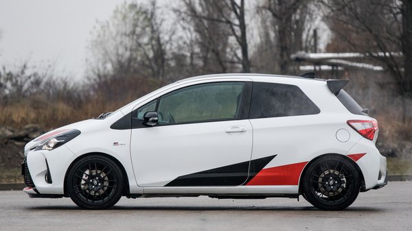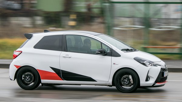 A Yaris GRMN a nagyon nörd, és legalább annyira tehetős hülyegyerekek hülyegyerek-autója, és ez nagyon jól áll neki. Rövidek a fokozatok, rövid lépcsőkkel, mellé idegbeteg motorral, és az egész szuggesztíven ücsörög az ember vállán és nem suttogja, hanem üvölti, hogy toljad már. És a GRMN-nek tolni kell, pattog a kis kerekein, közben egészen széles skálán mindenfajta hangon danászik és őrületes vicsorgó állatnak próbálja eladni magát.