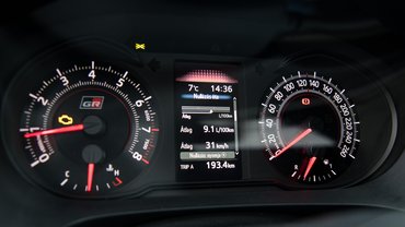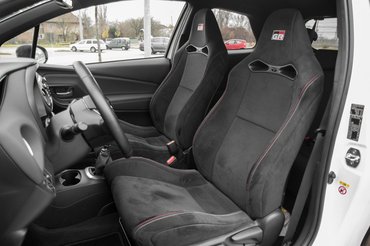 A GRMN-ben nincs üzemmódváltó kapcsoló, nem lehet némítani a kipufogóját, sem puhítani a futóművét. Nincs a motornak eggyel kulturáltabb beállítása, nincs takarékosság gomb, sőt, még start-stop se, hiszen a 400 darabos széria mellett lényegében nem befolyásolja a súlyozott flottaátlagot. Ez a Yaris motorindítástól leállításig ugyanaz a kedves rohadék, nem köntörfalaz, csak megy és falná fel a világot. Egy őszinte őrült, és jó, hogy még van ilyen.