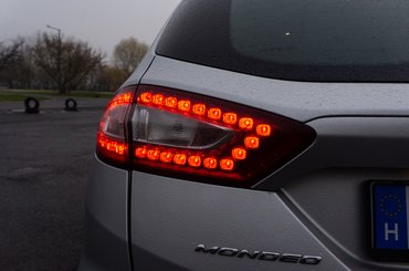 A Mondeo széltében-hosszában hatalmas állatnak látszik. 4,8 méteres hosszával túllő minden kategóriatársán, még a Škoda Superben is. A kipróbált példány három éves, éppen csak közelít a 130 ezer kilométeréhez, így már látszódna, ha a Mondeo széthullós volna, de egyelőre nagyon nem tűnik annak. Néhány külsérelmi nyom azért feltűnik a fényezésen és a felniken, de ennyi.