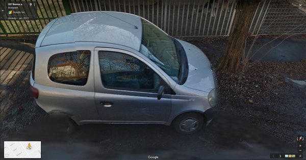 Megállapítható, hogy a Yaris kiállja az idő(járás) próbáját, mert ez az autó sosem parkolt garázsban. Még a Google Streetview-n is látható, ahogy otthon az akácfa alatt álldogál. És ami még látszik, az a jobboldali ajtó színe. Igen, elér az autó többi részétől. Hatnapos volt a kocsi, mikor el akarták lopni. A zártörő beletört a zárba és végigkarcolta az ajtót. A javítást szintén a Toyota Sakura végezte - hát, így sikerült. Egyébként a kocsihoz járt egy kis flakon javítófesték. Jobb lett volna otthon, ecsettel javítani.
