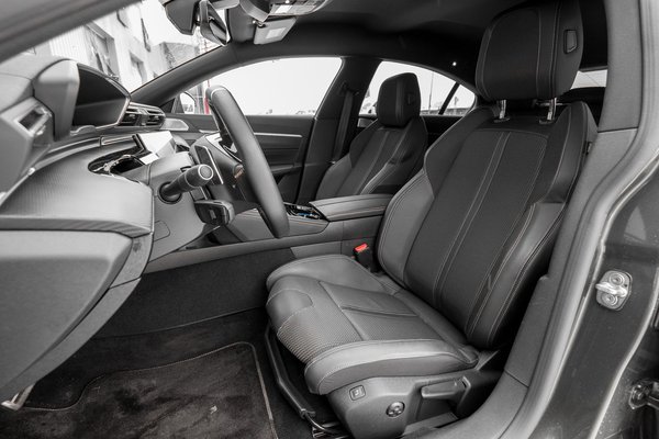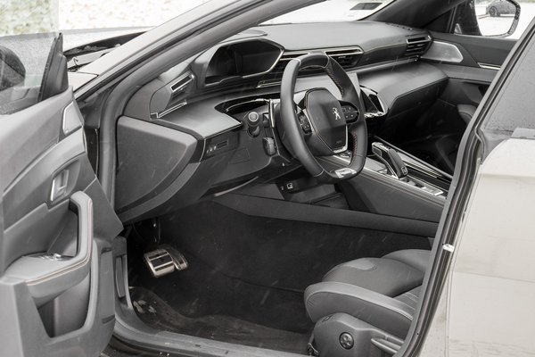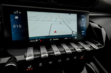 Belül a sok fekete miatt az alaphangulat komor, sőt, elsőre kissé kopár is – ennek különösen jót tesz egy világosabb belső, néhány kontrasztos elem. De az űrközpont-jelleg, ami a 3008-ast, 5008-ast is annyira feldobja, itt szintén megvan, csak ez a központ egy másik bolygó mellett kering. Itt minden lapos, vízszintes, a műszerfal blokkja tálcaként nyomul az ember elé, a zongorabillentyűs központi agy pedig zseniális formai elem. Nemhogy a Peugeot, hanem bármilyen középkategóriás kocsi mércéjével is igényes a kidolgozás, a sok puha felület, a duplán varrott borítások, a fémkapcsolók, a formák, a belső hangulat általában vett súlyos eleganciája helyből meghatározza a jó viszonyunkat a kocsihoz.