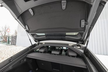180 lóerős, tehát az erősebb változat, a motorhoz pedig nyolcfokozatú automatikus váltó kapcsolódik, kormány mellől fülekkel is vezérelhető kivitelben. Az extrák között olyan csuda dolgok is előfordulnak, mint a három szintben keményíthető lengéscsillapítás, a sávfigyelős, önkormányzós, távolságtartós, megállásig fékező, pár másodperc várakozás után pedig még önműködően el is induló, tehát 2-es szintű önvezető rendszer. Az autóval való mély bizalom kiépítésére pedig tettek be ülésfűtést és a két műszer közötti panelen megjelenő képpel figyelmeztető éjjellátó kamerarendszert, 360 fokos parkolókamerákat és önparkoló-segédletet is.