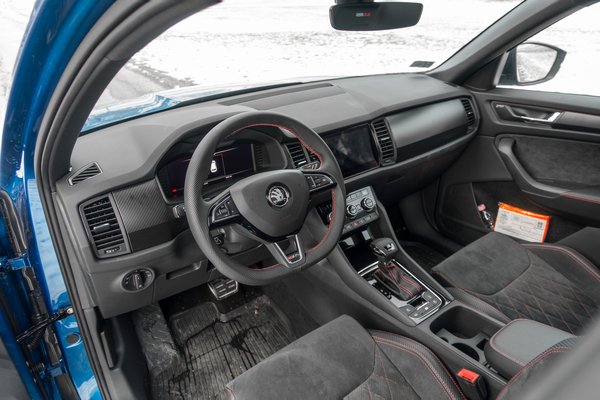 A Kodiaq RS nagyon nem olyan, mint a forgalomban már gyakran felbukkanó, mezei, elsőkerekes TDI-k és 1.5 TSI-k. Az eleve összkerékhajtású sportmodellt már feszesebbre hangolt futóművel, erősebb fékekkel és szériában 20 colos kerekekkel szerelik. A drámai hatást nemcsak az apró módosítások, a csillogó műanyag hűtőrács, vagy a vagányabb lökhárítók fokozzák, hanem a versenykék szín, a piros cérnával szegett első sportülések, illetve a puszta tény, hogy az RS kizárólag dízelmotorral rendelhető.