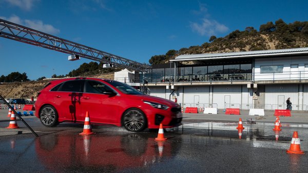 Furcsa a Kia tesztútszervezési metodikája, hiszen van olyan gyártó, aki az 560 lóerős autóját simán Európa legszűkebb szerpentinjein adja az újságírók kezébe, a legerősebb formájában 205 lóerős Proceedet viszont versenypályán hajthattuk. Merész na, hiszen egy modern turbómotorból előcsalt 205 lóerő pont arra elég, hogy az egyszeri sofőr országúton meglepődjön, ejnye de jól megy, viszont versenypályán elég hamar elkopik a kraft.