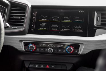 A 10,25 colos Audi virtual cockpitet, szóval a digitális műszeregységet meglepően olcsón mérik: 58 ezer forint. Mindent nem tud ennyiért, de méretezhető, igényre szabható így is sok minden, na meg ki lehet tenni rá a térképet. A sofőr felé döntött, 10,1 colos központi kijelző már drágább extra, ahogy nézem, ebben a formában (MMI touch) egy minimum 574 ezres. A nagy húzás benne, hogy az ujjakkal lehet zoomolni, mint egy igazi tableten, de amitől igazán touch, hogy állítólag képes kézírást értelmezni, azaz meg lehet úszni a betűkeresős, egyujjas begépelést, ami ezeknek a sajátja. Már csak dizájn okból is sajnálnám, ha nem lenne, és ha erre érzékeny A1-vevő lennél, szólok, hogy akkor már érdemes alá megrendelni a kétzónás klímát, mert a gombkiosztás sokkal elegánsabb így, mint az alapban.