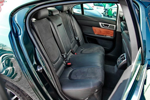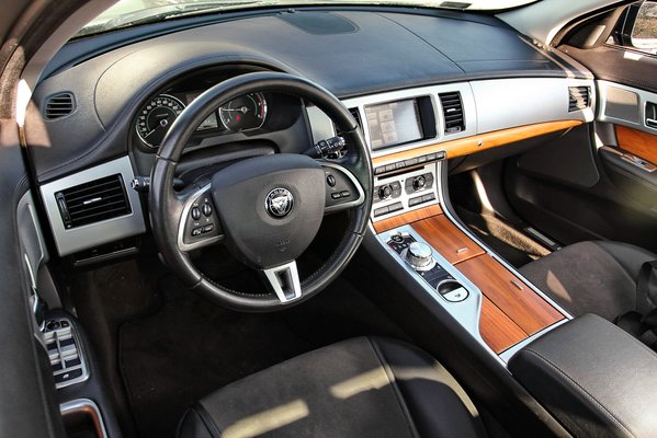 Beüléskor nem lehet nem észrevenni, hogy az XF ajtaja nem luxusautó-finomsággal nyílik-csukódik. Amúgy a beülés jellegzetes kicsit beesős stílusú, mint minden alacsony építésű autó esetében, amelynek ráadásul az üléseit is a padlóra tették és határozottan, majdnem sportosan formázták. Kicsit rikító fabetétek, fémdekorok és bőrbelső fogad. A fényes felület hátránya, hogy rögtön feltűnik, hogy az anyósülés előtt a műszerfalon eláll a fém díszbetét belső széle.
