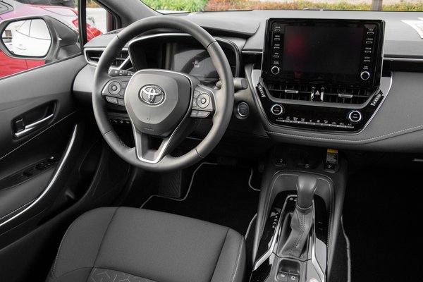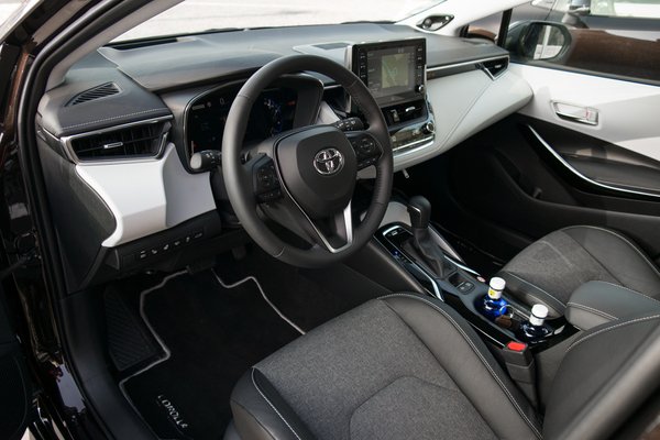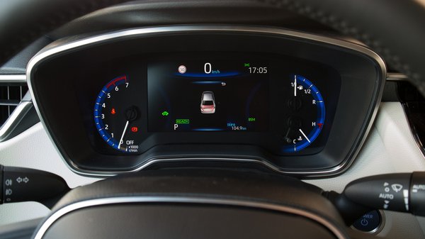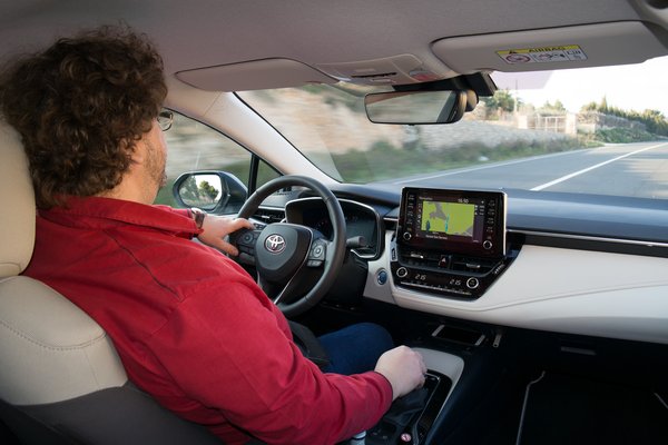 Azzal együtt, hogy valamiféle mai dizájnt kapott és végre kijavították az előző generáció műszaki alapjaiba kódolt hibákat, az új Corolla a felszínen is modernebbnek tűnik. A műszeregység közepén már LCD-kijelző van, míg kétoldalt mutatós műszerek sorakoznak – mondjuk az egész is lehetne LCD, és tán még olcsóbb is lenne az egység. A digitális rész mindenféle megjelenítési stílusokra képes, az erős hibridnél valamiféle trükkös 3D effekt is volt a virtuális műszereken, ez jópofa. Az LCD fényereje viszont necces, ha süti a nap, a fényerőszabályzás meg a 20 éves Toyota módszerrel, egy pöcök nyomkodásával történik. Fura módja ez a konzervativizmusnak. A központi menürendszerben nemigen volt idő elmélyedni, de amit láttunk, az egészen más világ volt, mint a korábbi, béna menü és a működési sebesség is megfelelő volt.