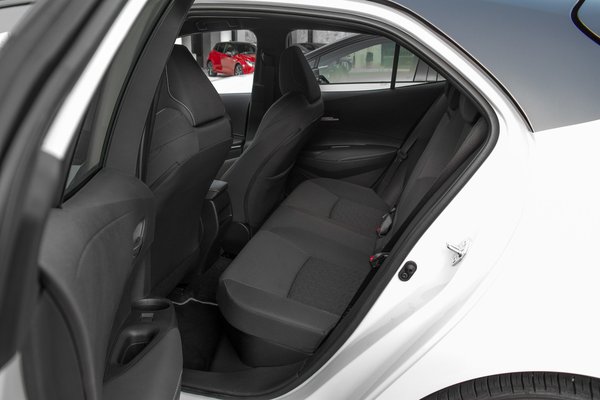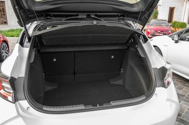 Azért az új Corollát egy ponton erősen térden lőtték az alkotói: az ötajtós verzió tengelytávja hat centivel rövidebb, mint a másik kettő, amitől még akár el is lehetne férni a hátsó ülésén, ha akarták volna. De nem akarták: én csak 173 centis vagyok, és épp hogy befér a térdem a háttámla mögé. Ettől leginkább egyfajta hiperluxus Jumbo-Yaris lett belőle, vagyis családi használatra nem az igazi, annak ellenére, hogy éppenséggel a 361 liternyi csomagtartóval (a nagy hibridé csak 313 l) még csak-csak elmenne. A piacon egyedül a Peugeot 308-as követi ezt a stratégiát, náluk is rövidebb az ötajtós verzió, mint a kombi – lényegében bármelyik másik konkurens tágasabb.