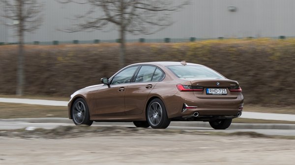 Úgy néz ki, mint az új 5-ös, csak leradíroztak róla néhány vonalat, a megmaradtakat pedig kissé merészebbre vették. A G20-as nem angyalszemekkel, hanem kivilágított hokiütőkkel néz bele a világba (beszélek itt a nappali menetfényekről), s ez a valóságban jól néz ki, csak szóban kissé, khm... furcsa. Hátul csudamód megívelték a lámpákat, a hátfalat, de az egész tömörség ettől még rettentő BMW-ssé teszi még mindig. Ha valaki semmilyen, de tényleg semmilyen finom formai formát nem tud megjegyezni egy autón, és az új 3-as megint csak egy Hofmeister-knickben végződő oldalablak-vonalú, négyajtós BMW-t jelent neki, akkor az új kivitelt arról talán megismeri, hogy akkorák az orrlyukai, mint egy picadorok által sokszorosan megsebzett bikának a rondai stadionban, a lökhárítók négy sarkában pedig oldalukra dőlt, T alakú, krómozott betétek laknak.