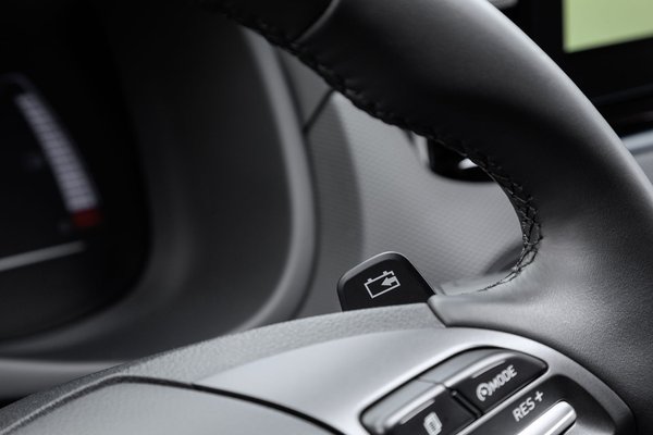 Jól el lehet vele játszani, főleg, hogy kézre esik mindkét gomb. Sokkal jobban használhatóak erre, mint a Kona kormányán lévő fülek, amik nem túl előnyös helyen vannak és elég korlátozott a hatásuk. Az (is) nagy csalódás volt a rengeteg áradozás után, amit olvastam róla. Az automata regenerálódás viszont jó ötlet a Konában, az előttünk haladó autót figyelve dönt a visszatáplálás mértékéről.