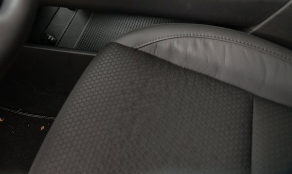 A Hyundai üléskárpitja a legolcsóbb műbőr és valami borzasztó textil keveréke, ami már újonnan is úgy néz ki, mintha szétfoszlott volna.