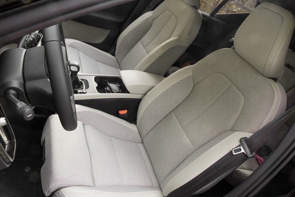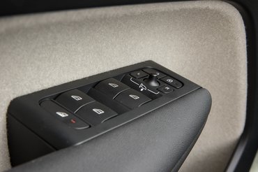 A prémium márkáknak szerintem külön részlege van arra, hogy egy drága anyagokból épített autóban is érezzük, hogy ez még nem a modelpaletta teteje, hiába fizettünk prémium-felárat. A Volvóban is vannak indokolatlan méretű műanyagfelületek, nincs tekerőpotméteres indítás, ha az ember ült már nagyobb modern Volvóban, akkor érzi, hogy messze van a csúcstól. Az ajtóbetét-kárpit viszont tetszik, ez igazából egy sima, rosszabb minőségű szövet, de váratlan helyen alkalmazva, és egész jó hozzáérni vezetés közben.