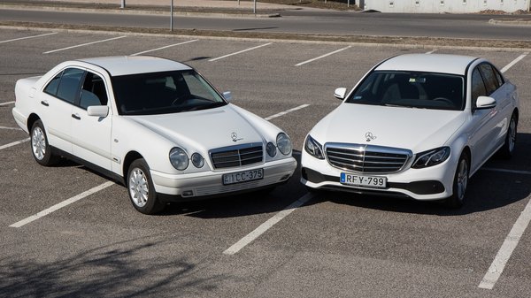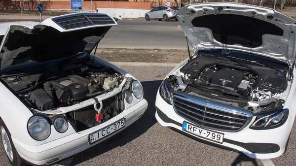 Viszont, ha már nálunk járt az E200, eszembe jutott, hogy pár éve írtunk egy hasonlóan felszerelt E Merciről, igaz, az 1999-es. Adta magát az ötlet, hogy találkozzon a két autó, hiszen látni fogjuk, hogy két évtized alatt mennyit fejlődött a prémiumipar. Így állt egymás mellett az 2019-es E200 és az 1999-es E240.