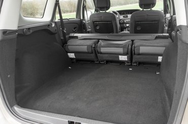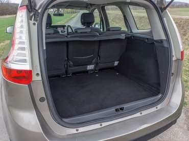 Ez a Grand Scénic azon ritka példányok közé tartozik, amelyekbe nem rendeltek harmadik üléssort, cserébe viszont orbitális, 752 literes a csomagtartója. Ez az a szint, amiben már vígan elpiknikezhetünk, nekem a hátsó székeknek támaszkodva épp' csak nem lógott ki a lábam a csomagtartón. Ha ez sem lenne elég, pikk-pakk előre hajthatjuk az üléseket, amivel 1,8 köbméteres rakteret kapunk. Igen, így már csak egy nagyobb matrac hiányozna a Grand Scénicből, hogy hibátlan utazóautó legyen, de fontos megjegyezni, hogy a középső üléssort csak felhajtani (vagy kiszerelni) lehet, nem hajtogathatjuk a padlóba, mint a harmadik üléssornál (ha lenne ebben az autóban). Kár érte, mert egyébként a mozgatómechanizmus elég ügyes, és könnyen használható még hat év használat után is.