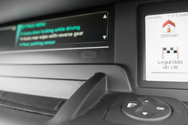 Az ergonómia már kicsit gázosabb. Az előttünk lévő, kicsit béna TFT kijelzőt egy alig észrevehető gombbal lehet kezelni. Óracsoportból elég sokféle dizájnt választhatunk, de nekem inkább jól esett volna az előd minimalistább megoldása, vagy főleg egy hagyományos műszeregység. Külön tekerőgombot kapott a médiaegység hangerőszabályozója és a frekvenciaállító is, emellett pedig van egy teljes vezérlőpad a TomTom fedélzeti egységnek is. Nyilván csak megszokás kérdése, de nekem ez már egy kicsit sok volt. A navi egyébként elég jól működik, ha ilyen autót szemeltünk ki, ne felejtsük el megnézni, hogy a hozzá kapott SD-kártya benne van-e az autóban, mert arról szedi a térképeket. Mondjuk a Waze világában ez már nem ügy, de ha nem akar mobilos tartóval vacakolni (mert tenni sehová nem lehet a telefont, ugye), akkor jó, ha van egy működő beépített navink.